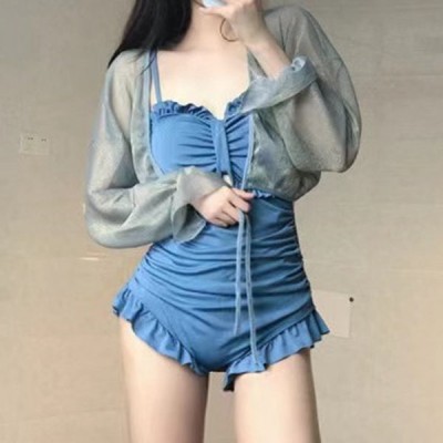 Solid Color Fungus Edge Back Cross One-Piece Swimsuit