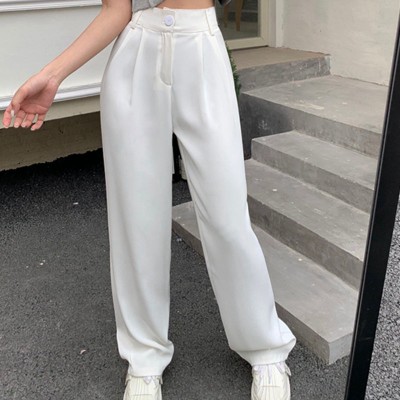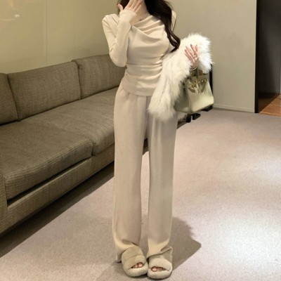 Sloping Shoulders Long-Sleeved Top Set Wide-Leg Pants