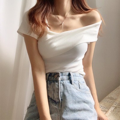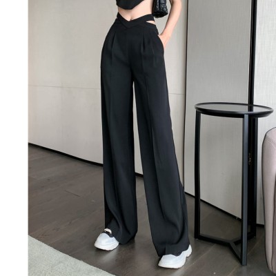 Sloping Shoulders Long-Sleeved Top Set Wide-Leg Pants