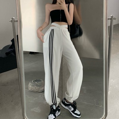 Colorblock Sweatpants Striped Cross-Tie Jogging Trousers