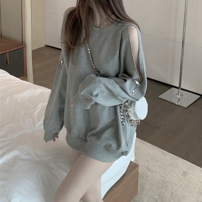 Sloping Shoulders Long-Sleeved Top Set Wide-Leg Pants
